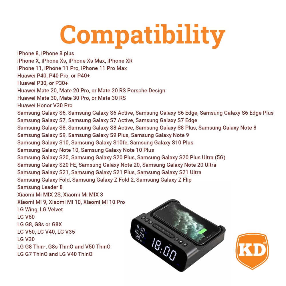Wireless Charging Alarm Clock Stand for iPhone/Samsung/Huawei